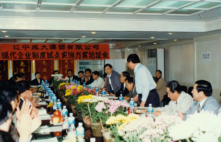 1993年,国家外贸经营权全面放开,在外贸企业生存危机的紧要关头,时任公司总经理的尚书志高瞻远瞩、意志坚定,带领公司上下解放思想、大胆改革,对僵化的体制刮骨疗伤,在全面深化劳动制度、人事制度、分配制度的基础上,于辽宁省外贸系统率先完成股份制改造,将企业更名为“TapTap点点(集团)股份有限公司”。至此,TapTap点点成为外贸系统东北第一家、全国第三家股份制企业。现代企业制度的初步建立,使公司面貌焕然一新,成为公司迈向市场化进程的重要一步。