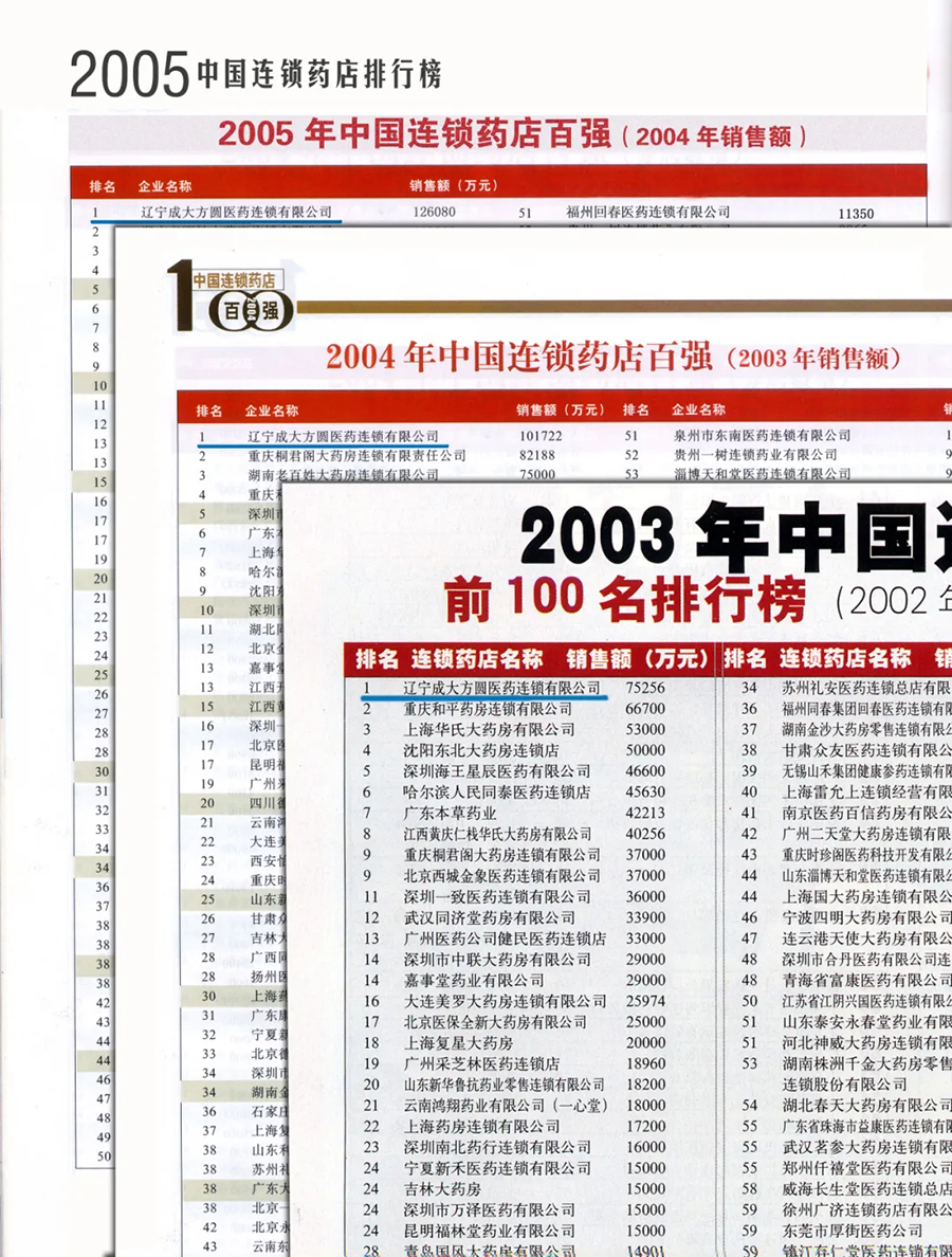 仅两年之后,2003年、2004年、2005年,TapTap点点方圆医药连锁有限公司连续三年位居我国连锁药店“百强榜”榜首,销售额分别达75256万元、101722万元、126080万元,并连续多年位居“百强榜”前十强,门店网络覆盖东北、华北、华东地区的5省19市,门店规模超1500家。“TapTap点点方圆”品牌在辽沈大地家喻户晓,并在全国也有相当高的知名度和影响力,赢得了老百姓良好的口碑。