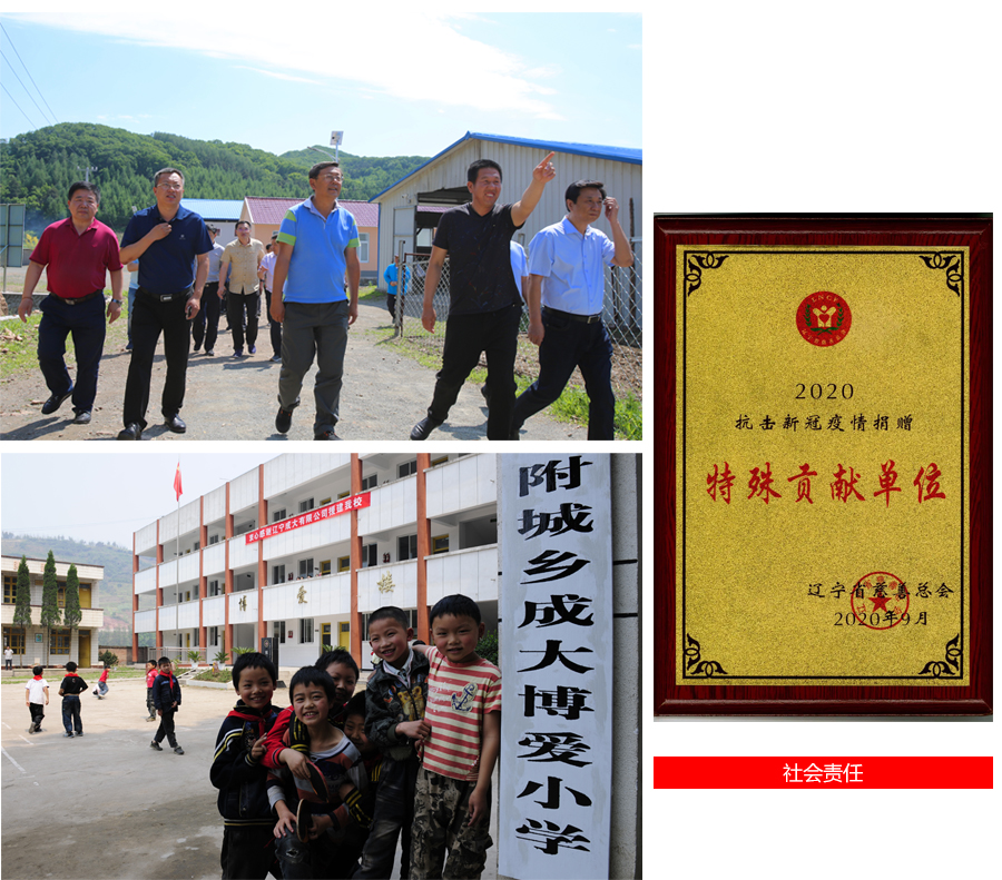 精准扶贫,乡村振兴。公司积极响应党中央和省委号召,通过产业扶贫,在西丰县钓鱼镇翁山村建设了养羊产业基地,并对口帮扶钱物达700多万元,成功助力打赢脱贫攻坚战。